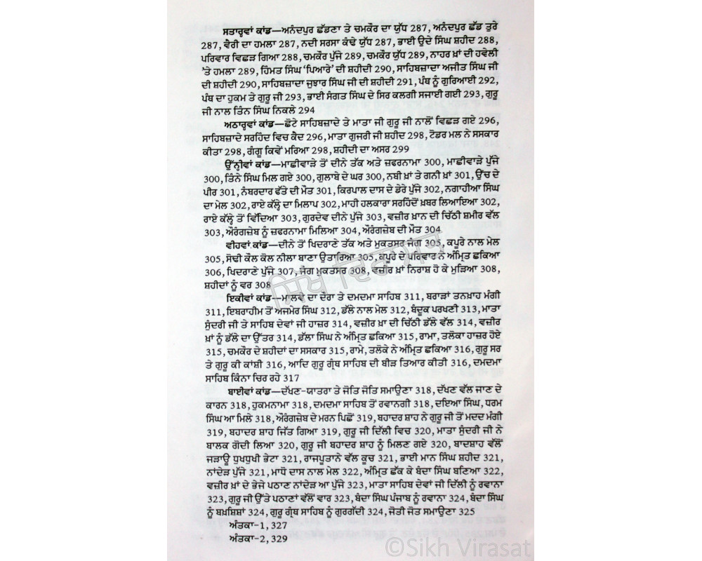 ਇਸ ਪੁਸਤਕ ਵਿਚ ਸੱਜਣ ਠੱਗ, ਖਡੂਰ ਦਾ ਤਪਾ, ਬੀਬੀ ਰਸਨੀ ਤੇ ਪਿੰਗਲਾ, ਮਾਤਾ ਸੁਲੱਖਣੀ, ਛੋਟਾ ਘਲੂਘਾਰਾ, ਜੰਗ ਹਿੰਦ ਤੇ ਚੀ..
