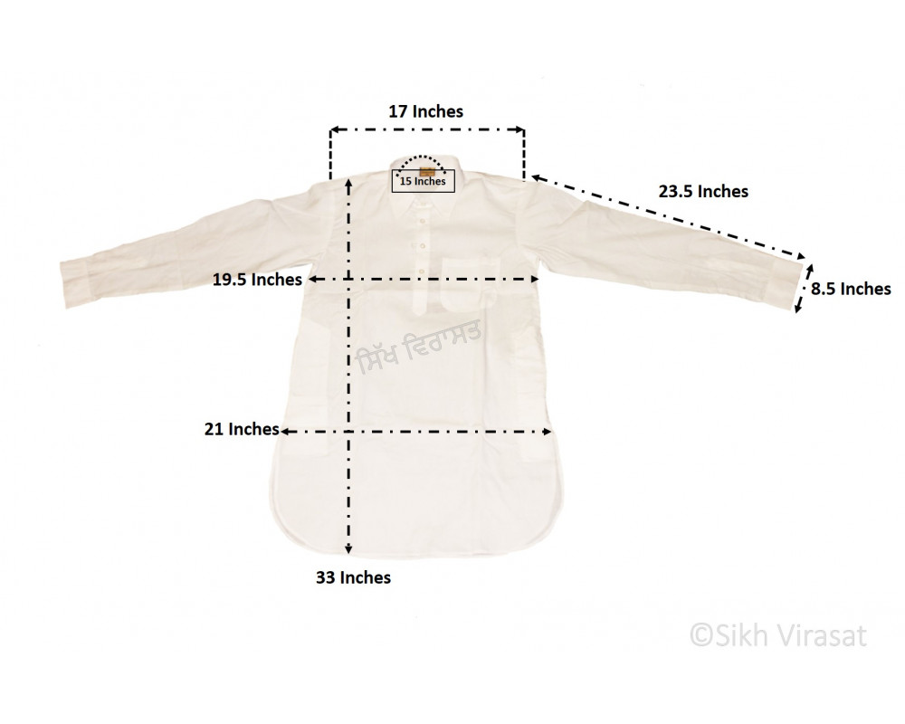 Kurta actual chest measurement (stich to stich, 1 inch below the arm hole) e.g. if kurta shirt's actual chest measurement is 19.5 inches, we display it as 19.5 inches.