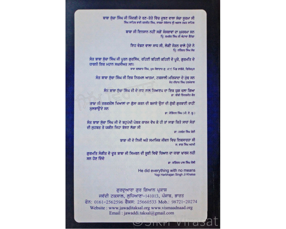 Sant Baba Sucha Singh Ji Di Dharm Te Sanskriti Nu Den - ਸੰਤ ਬਾਬਾ ਸੁੱਚਾ ਸਿੰਘ ਜੀ ਦੀ ਧਰਮ ਤੇ ਸੰਸਕ੍ਰਿਤੀ ਨੂੰ ਦੇਣ Book By: Jawaddi Taksal