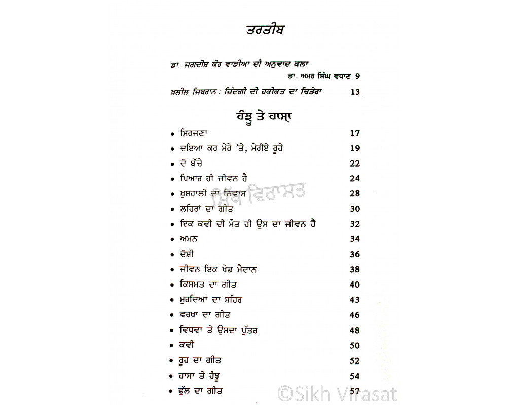 ਇਸ ਪੁਸਤਕ ਵਿਚ ਡਾ. ਜਗਦੀਸ਼ ਕੌਰ ਵਾਡੀਆ ਨੇ ਖ਼ਲੀਲ ਜਿਬਰਾਨ ਦੀਆਂ ਬਹੁਮੁੱਲੀਆਂ