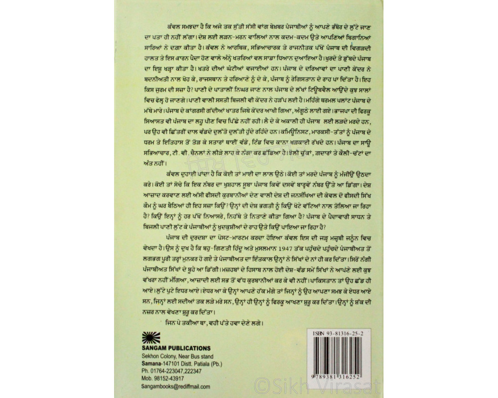 Punjab! Tera Ki Banun? ਪੰਜਾਬ ਤੇਰਾ ਕੀ ਬਣੂੰ - Book By Jaswant Singh Kanwal This book contains m..