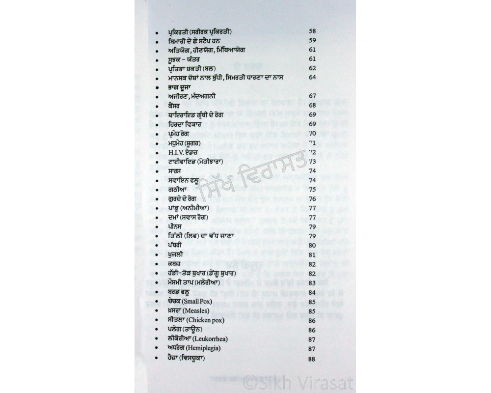 ਇਸ ਕਿਤਾਬ ਵਿੱਚ ਲੇਖ਼ਕ ਨੇ ਬਿਮਾਰੀਆਂ ਦਾ ਟਾਕਰਾ ਕਰਨ ਲਈ ਆਯੁਰਵੇਦਿਕ ਨੁਸਖ਼ੇ ਦਿੱਤੇ ਹਨ |