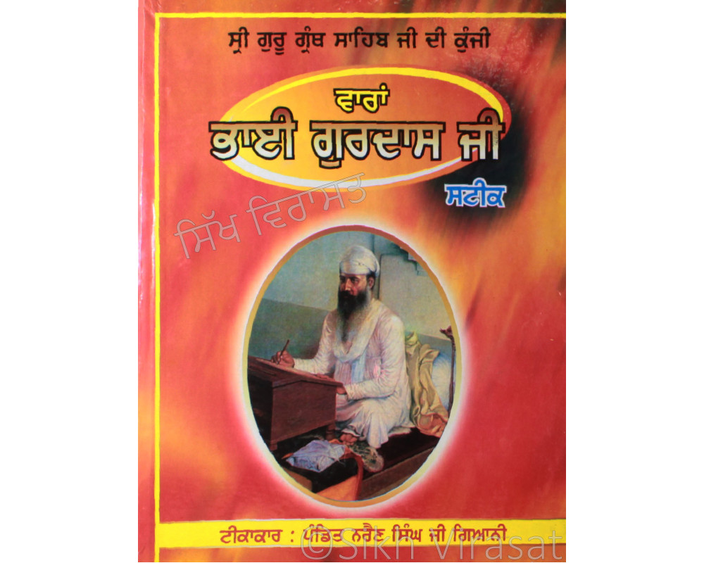 Varan/Waran Bhai Gurdas Ji Steek (Punjabi: ਵਾਰਾਂ ਭਾਈ ਗੁਰਦਾਸ ਜੀ ਸਟੀਕ) ਟੀਕਾਕਾਰ: Pt. Narain Singh Ji Giani, Publisher: Bhai Jawahar Singh Kirpal Singh and Co, Amritsar