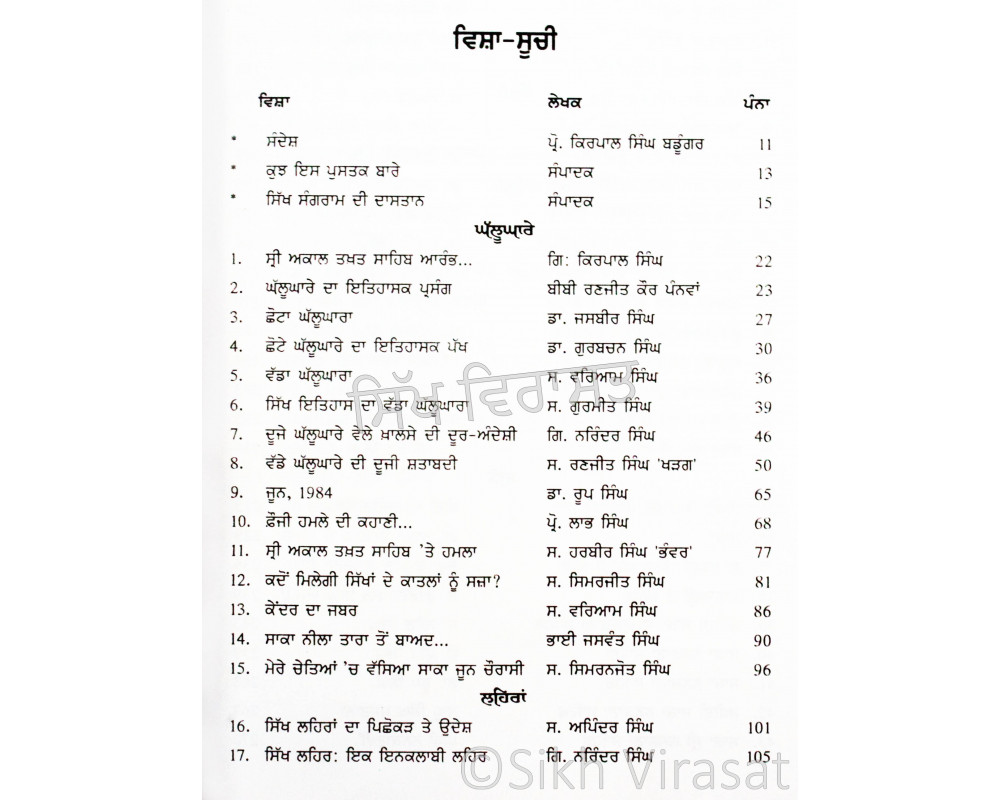 ਸਿੱਖ ਹਮੇਸ਼ਾਂ ਹੀ ਸੰਗਰਾਮ ਵਿਚ ਰਹੇ ਹਨ । ਸਿੱਖ ਸੰਗਰਾਮ ਨਾਲ ਸੰਬੰਧਿਤ ਵਾਪਰੇ ਘੱਲੂਘਾਰਿਆਂ, ਸਿੱਖਾਂ ਵੱਲੋਂ ਜਬਰ-ਜ਼ੁਮਲ ਦੇ ਵਿਰੁੱਧ ਸ਼ਾਂਤਮਈ ਕੀਤੇ ਸੰਘਰਸ਼ ਦੀ ਦਾਸਤਾਨ ਨੂੰ ਦਰਸਾਉਂਦੇ ਮੋਰਚਿਆਂ, ਸਾਕਿਆਂ, ਲਹਿਰਾਂ ਸੰਬੰਧੀ ‘ਗੁਰਮਤਿ ਪ੍ਰਕਾਸ਼’ ਵਿਚ ਪ੍ਰਕਾਸ਼ਿਤ ਹੋ ਚੁੱਕੇ ਲੇਖ ਇਸ ਪੁਸਤਕ ਵਿਚ ਸ਼ਾਮਿਲ ਕੀਤੇ ਗਏ ਹਨ ।