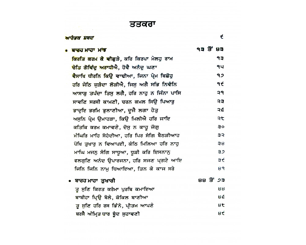 ਅਤੇ ਦੂਜੀ ਤੁਖਾਰੀ ਰਾਗ ਵਿਚ ‘ਗੁਰੂ ਨਾਨਕ ਦੇਵ ਜੀ ਦੀ । ਜੇ ‘ਬਾਰਹ ਮਾਹਾ’ ਵਿਚ
