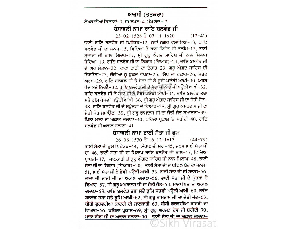 : Vartak Jiwan Char Sikh - Bhai Rai Balwand Ji, Bhai Satta Ji, Baba Sundar Ji,