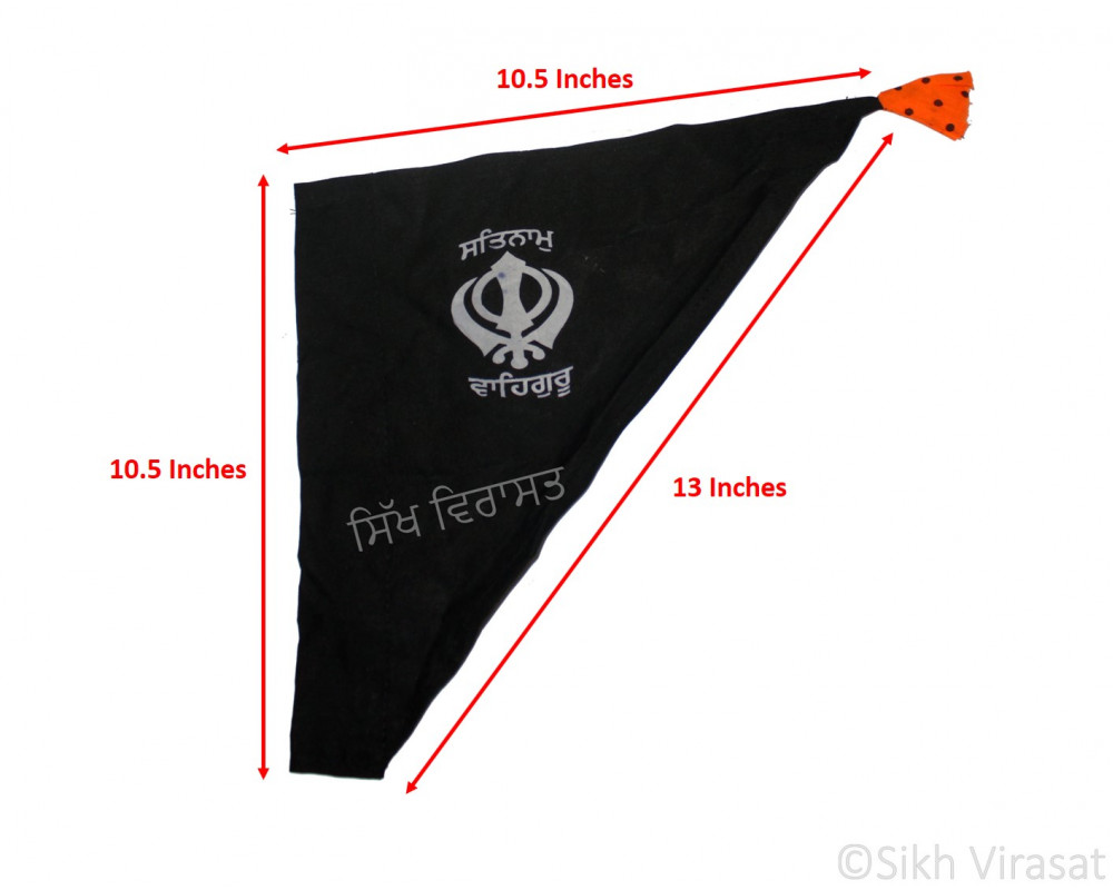 We offer this Nishan Sahib or Printed Flag in two colors namely, Royal Blue & Black. The flag is 10.5 Inches Tall and 10.5 Inches Wide, covering the diagonal distance of 13 Inches.