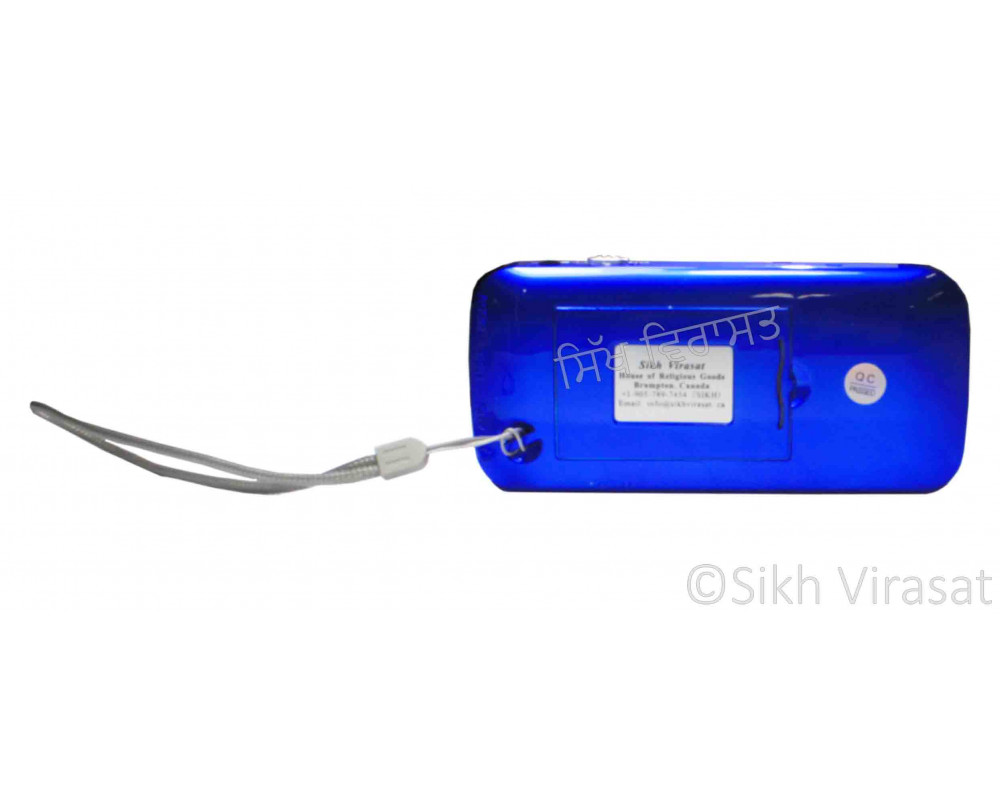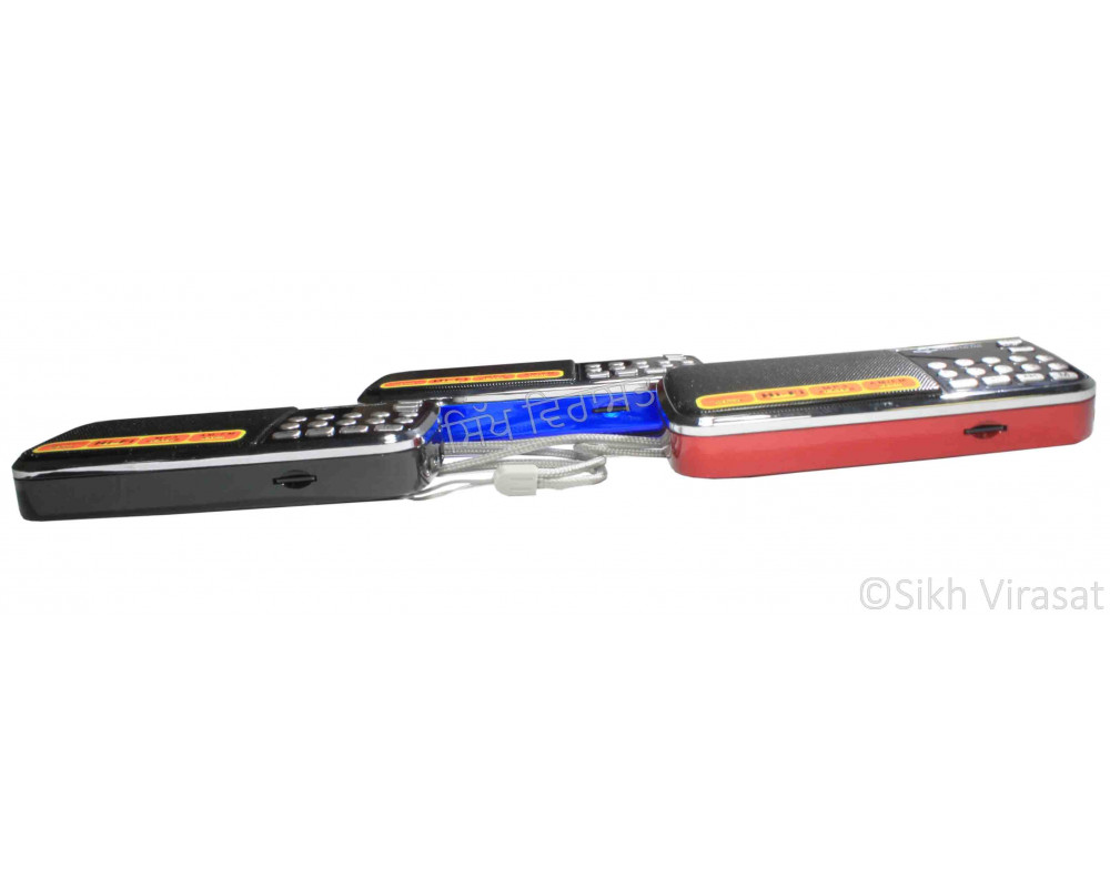 This Gurbani MP3 Radio Player with built in speaker is a great, small, portable system allowing you to listen to Gurbani, Paath, Kirtan and Katha simply and easily. Measuring a compact 11cm wide, 6cm tall and just 2 cm deep, this comes Pre-loaded with hundreds of hours of MP3s, all easily selected with just a few taps. Choose the track you want by pressing on the large clear numbers keypad and press play. For example, to play Sri Sukhmani Sahib, you would press 9 and play.