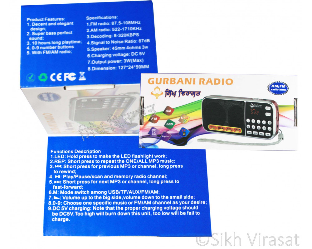 Gurbani Radio with 8GB micro SD cardThis Gurbani MP3 Radio Player with built in speaker is a great, ..