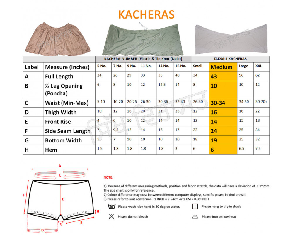 Kachehra or Kacchera or Kachera No.11 Cotton Elastic Waist Size 26 - 30 Inches Color White It i..