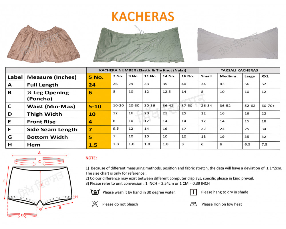 Kachera or Kachehra or Kacchera Number 11 Cotton Tie-Knot (Naale Wala) Waist Size- (26 to 30) ..