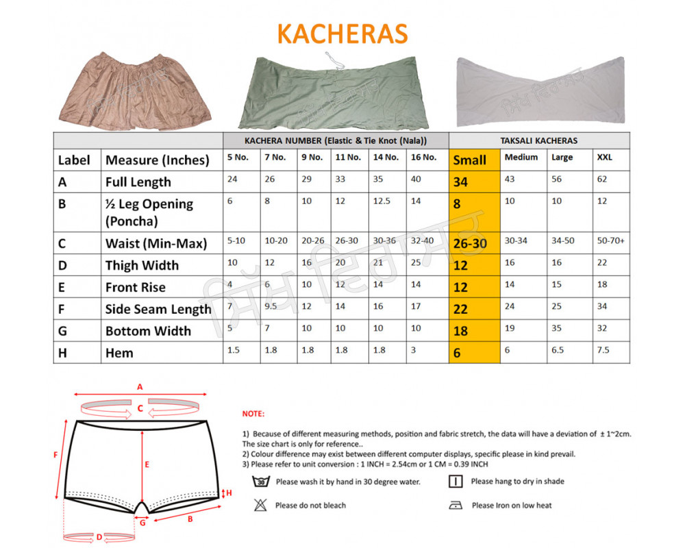 dimensions written in the images with your own old kacheras, if you have any.