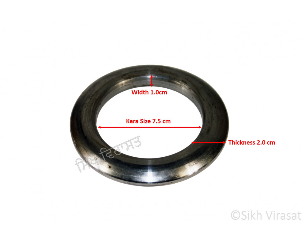 This Iron (Punjabi: Sarabloh) Kara has a diameter which ranges from 7.3 cm to 7.7 cm. It is made of premium quality Sarabloh (Iron). It is 1.0 cm wide and around 2.0 cm thick, which gives it a nice heavy weight around 331-350 gm.
