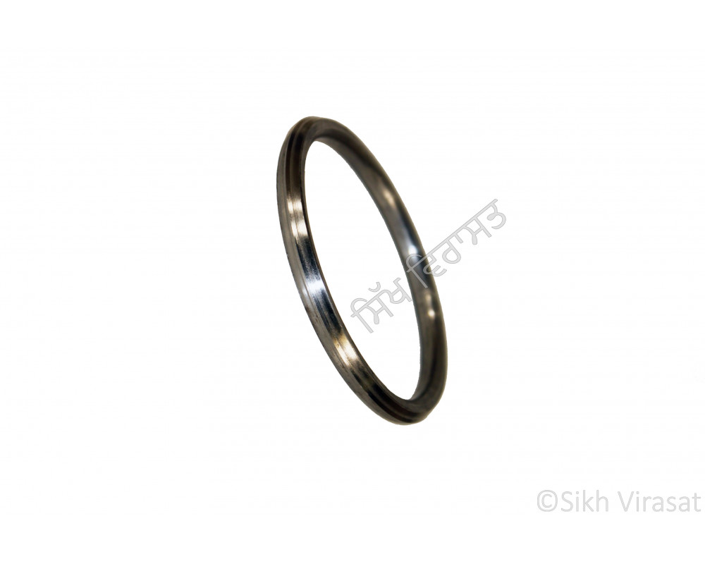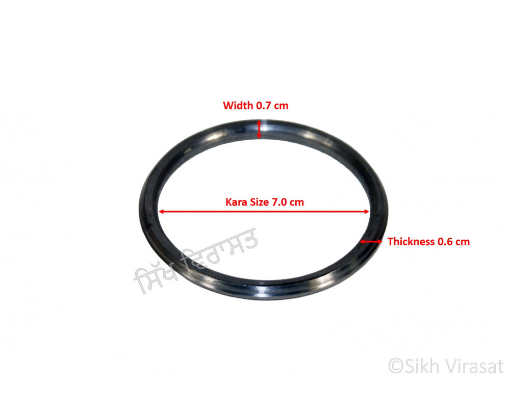This Iron (Punjabi: Sarabloh) Kara has a diameter which ranges from 6.5 cm to 7.5 cm. It is made of premium quality Iron and has several designer rings on it. It is around 0.7 cm wide and 0.6 cm thick, which gives it a nice weight around 51 - 56 gm.
