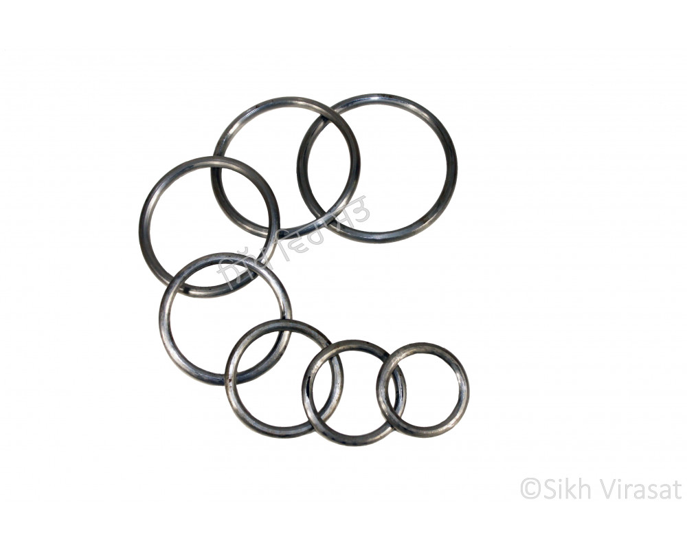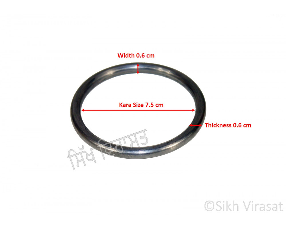 This Iron (Punjabi: Sarabloh) Kara has a diameter which ranges from 3.6 cm to 7.5 cm. It is made of premium quality Iron and has a nice smooth finish to it. It is around 0.6 cm wide and 0.6 cm thick, which gives it a nice weight from 32 - 61 gm depending on the size.