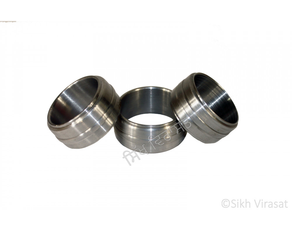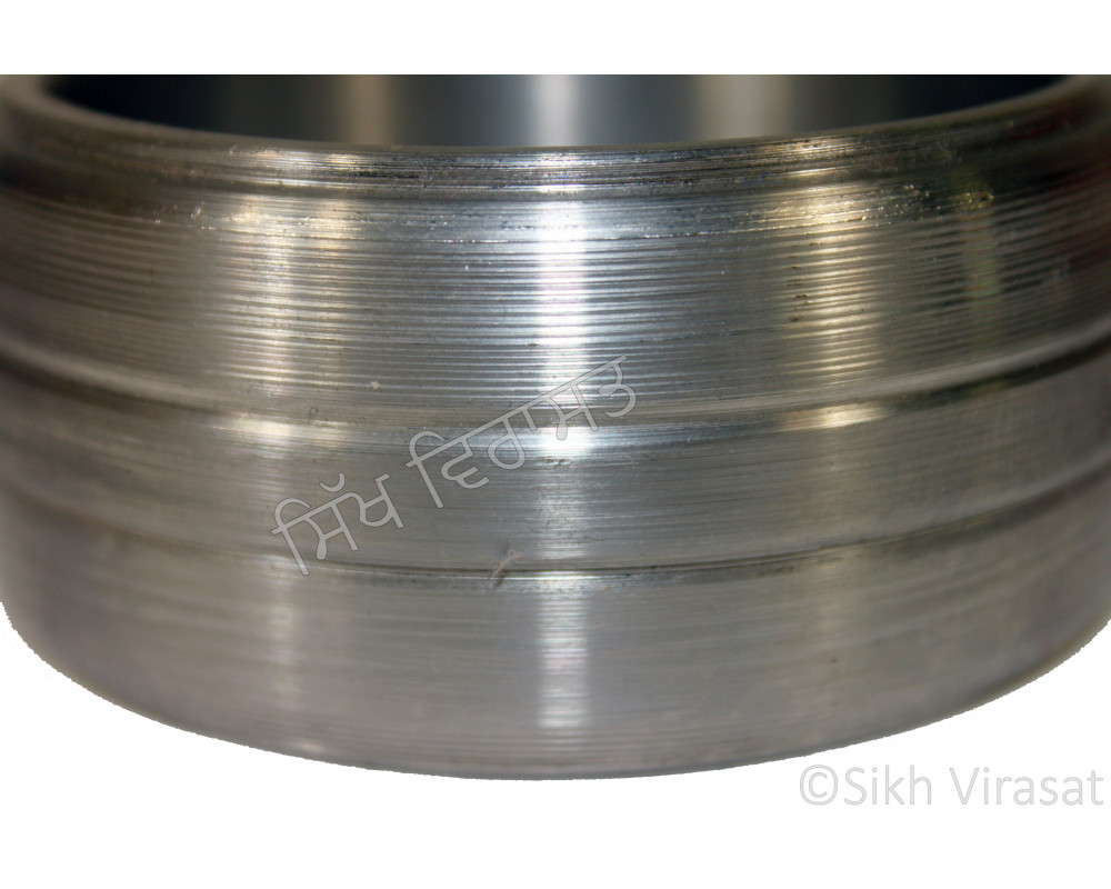 This Iron (Punjabi: Sarabloh) Kara has a diameter which ranges from 7.0 cm to 7.5 cm. It is made of premium quality Iron and has several designer rings on it. It is around 4 cm wide and 0.8 cm thick, which gives it a nice and heavy weight around 370-572 gm.