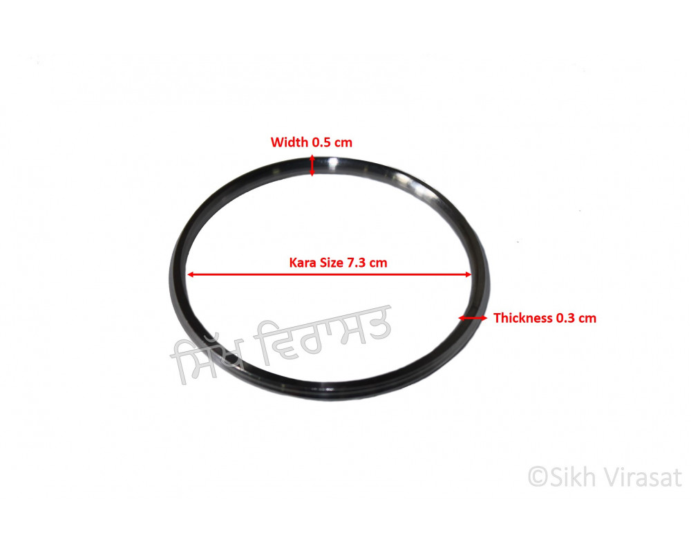This Stainless Steel Kara has 7.3 cm diameter. It is 0.5 cm wide and 0.3 cm thick, which gives it a nice weight of 28 gm. The kara is made of fine quality Steel, meant to last for decades.