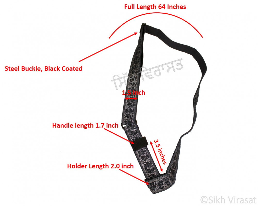 Khalsa Kirpan Gatra Or Gaatra Designer Embroidery Black, Silver Floral Pattern Adjustable Steel Buckle Width 1.5 Inch Color Black