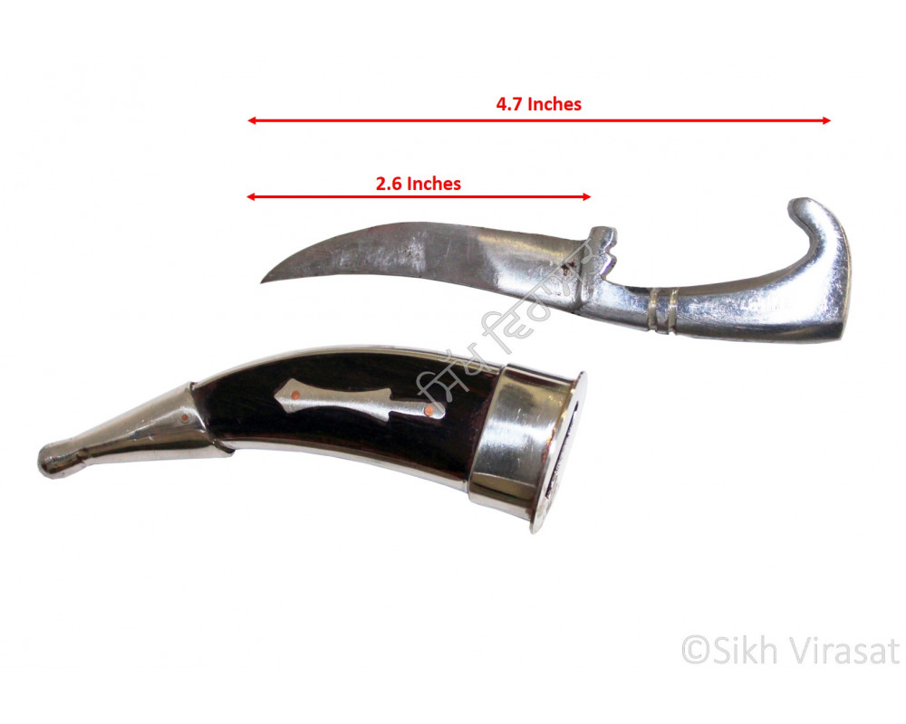 This 4.7 Inch Miniature replica of an actual Kirpan beautifully captures the grace of Holy Kirpan. It has been crafted using premium quality Stainless-steel & Iron. The blade length is around 2.6 Inches.