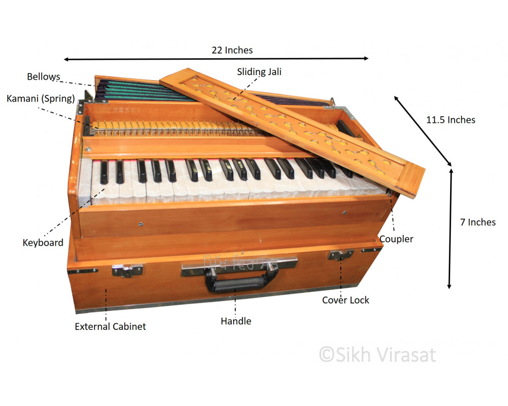 has three Octaves. The keyboards in this harmonium is Vertical pivot pin style.
