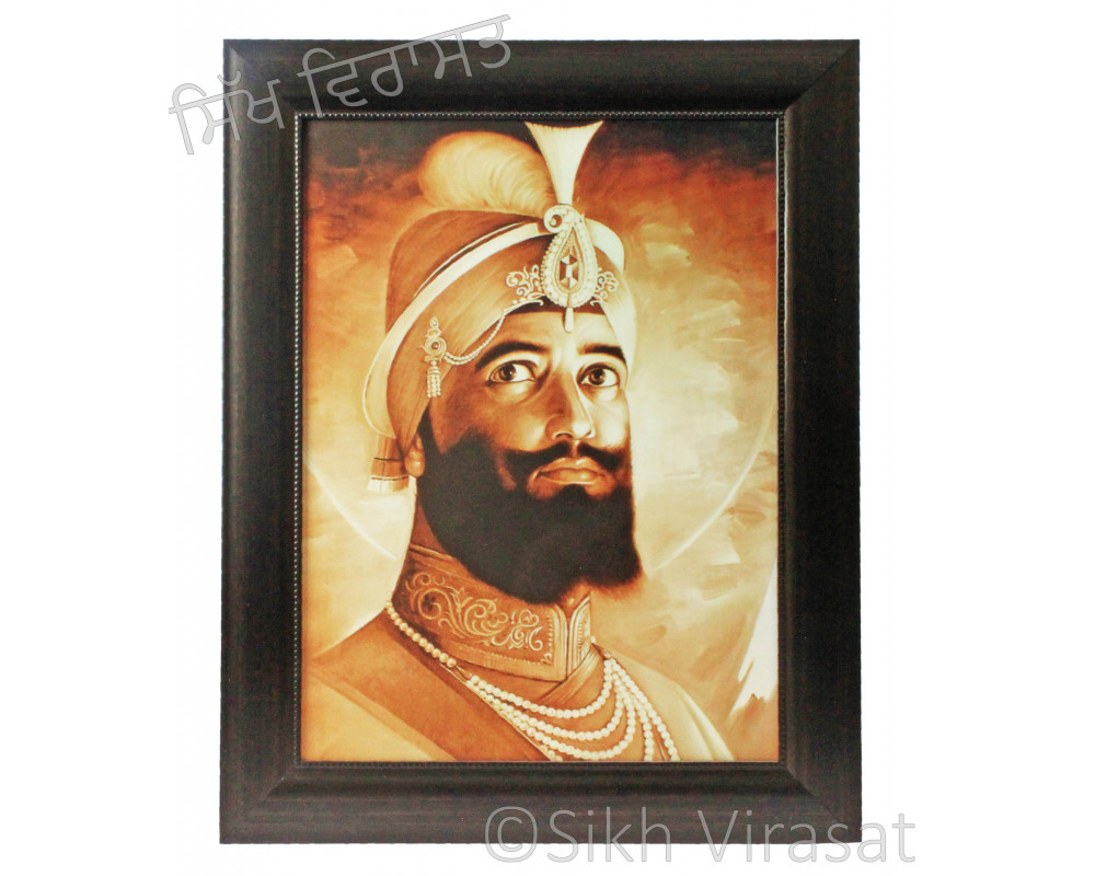 Shri Guru Gobind Singh Ji Copper Dark Brown Frame with Transparent Fiber Black & White Photo, ..