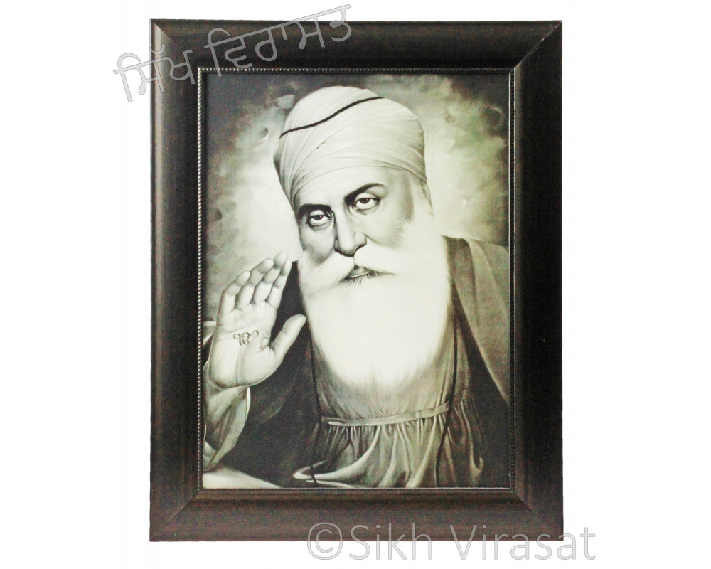 Nanak Dev Ji Copper Dark Brown Frame with Transparent Fiber Black & White