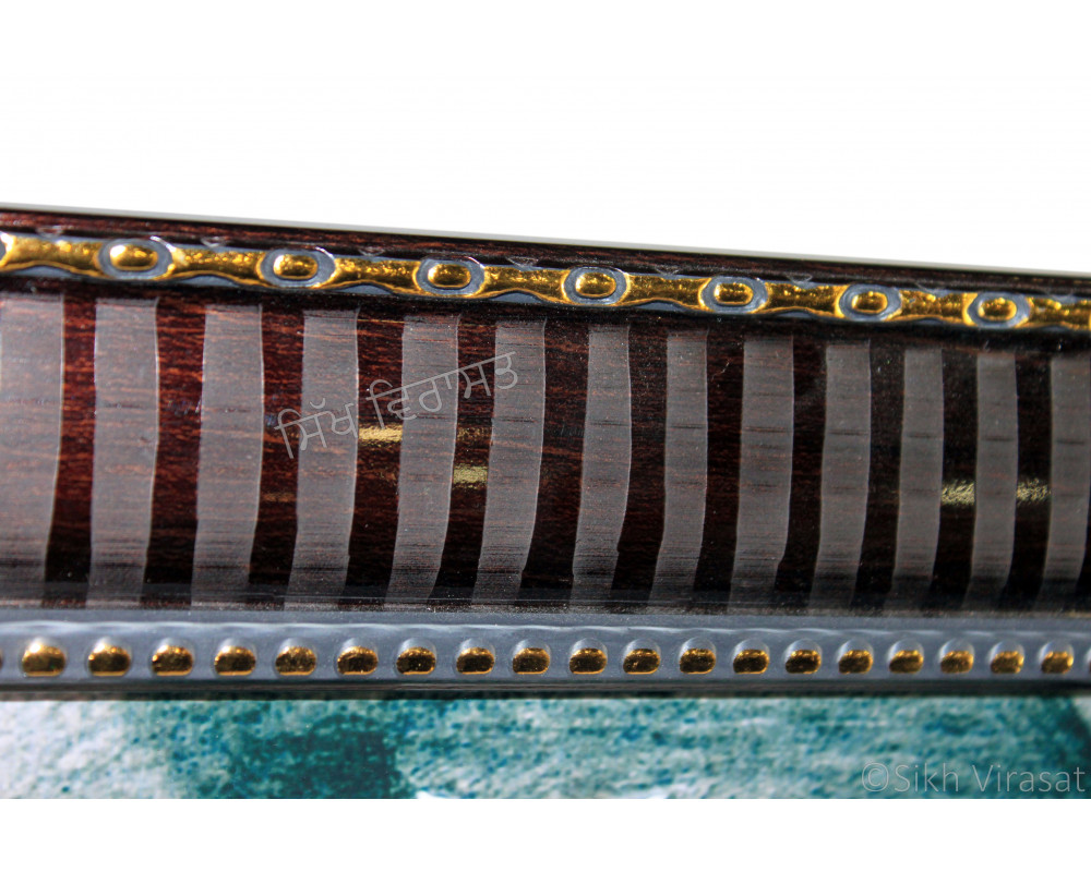 Shri Guru Angad Dev Ji Colored Photo, Wooden Frame with lined pattern and golden borders, Size – 17x23
