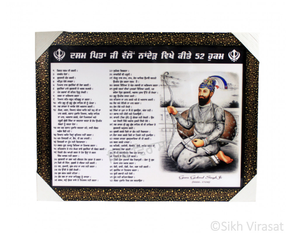 Shri Guru Gobind Singh Ji’s Hukamnama (52 Teachings) Colored Photo, Wooden Frame with attractive pattern, Size – 17x23
