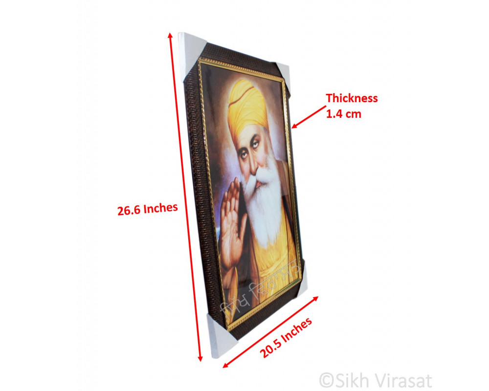 Shri Guru Nanak Dev Ji Copper Dark Brown Frame with Transparent Fiber Colored Photo, Size 12 X 16&..