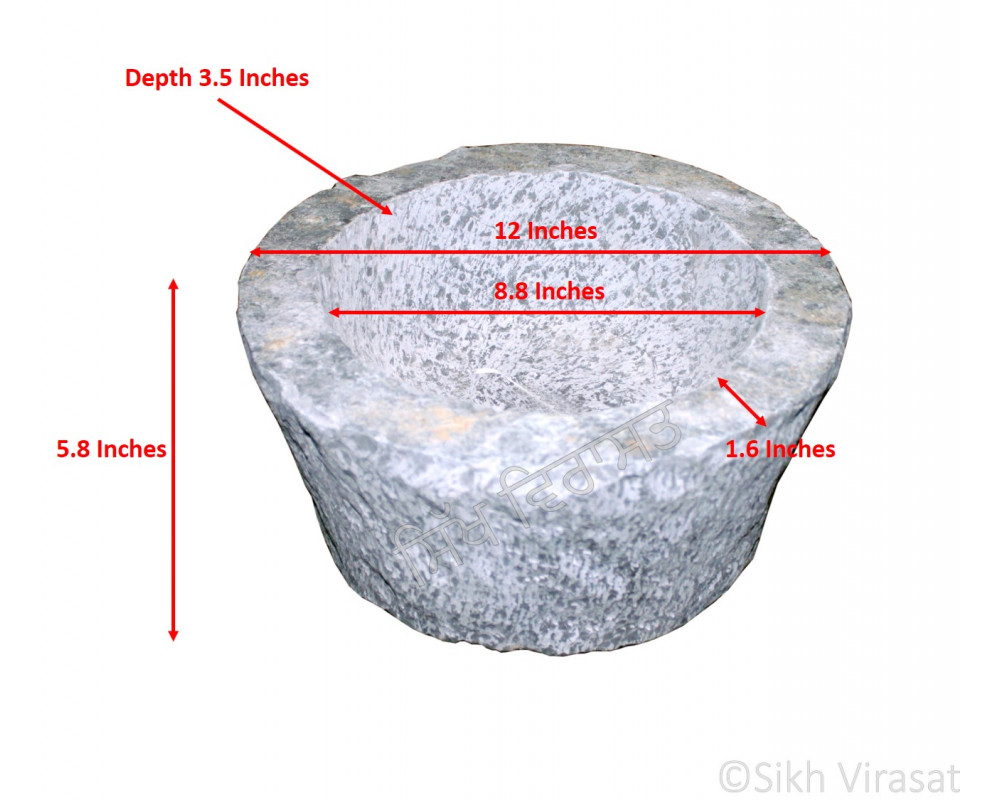 This Stone Mortar (Punjabi: Kunda) is 16 Inches Wide and 6 Inches Tall. It is made of premium quali..