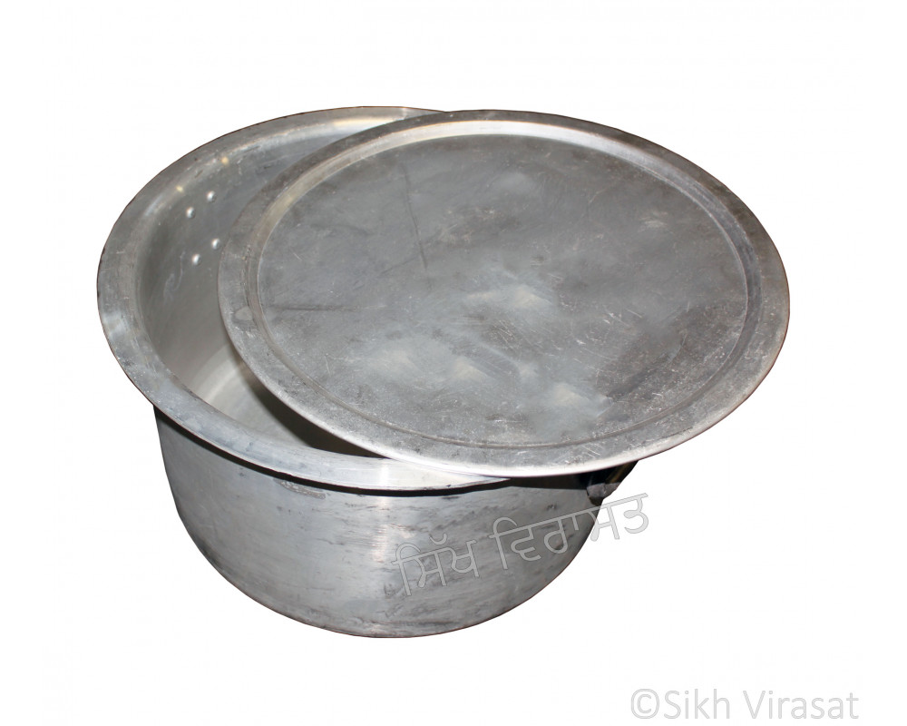 Patila (Punjabi: ਪਤੀਲਾ) Kunde Wala Aluminium or Aluminum Color – Silver Size – 19 (Number 38) Inch & 27 (Number 54) Inch