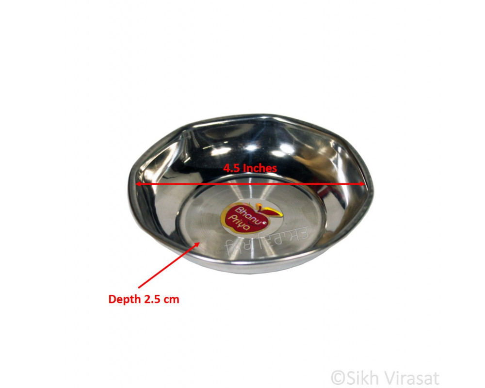 This stainless-steel octagonal shaped dish has a diameter of 4.5 Inches and height of 2.5 cm.