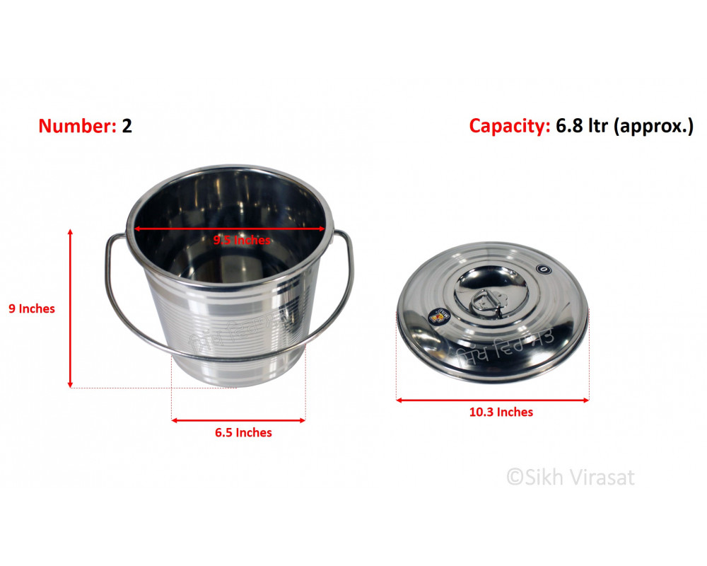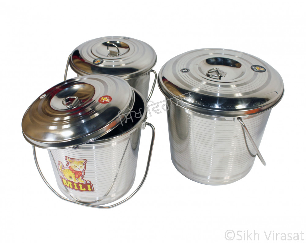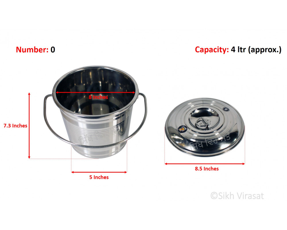 Balti (Punjabi: ਬਾਲਟੀ) Bucket Stainless-steel Color Silver Capacity 4, 4.8, 6.8 liters Size Number: 0, 1 & 2