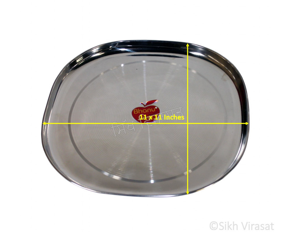 Plate (Punjabi: ਪਲੇਟ) squircle (square + circle) shaped Stainless-steel Color Silver Size 11x11 inch