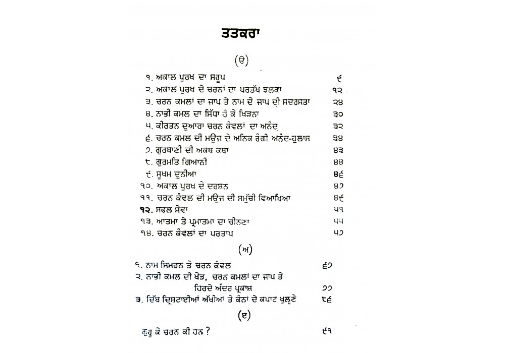 ਵਿਚ ਚਰਨ ਕਮਲ ਦਾ ਸਾਰਾ ਵਿਸ਼ਾ ਉਪਕਰਮ ਤੇ ਉਪਸੰਹਾਰ ਦੀ ਰੀਤੀ ਨਾਲ ਪੇਸ਼ ਕੀਤਾ ਗਿਆ ਹੈ । ਅੰਕ ‘ਅ’