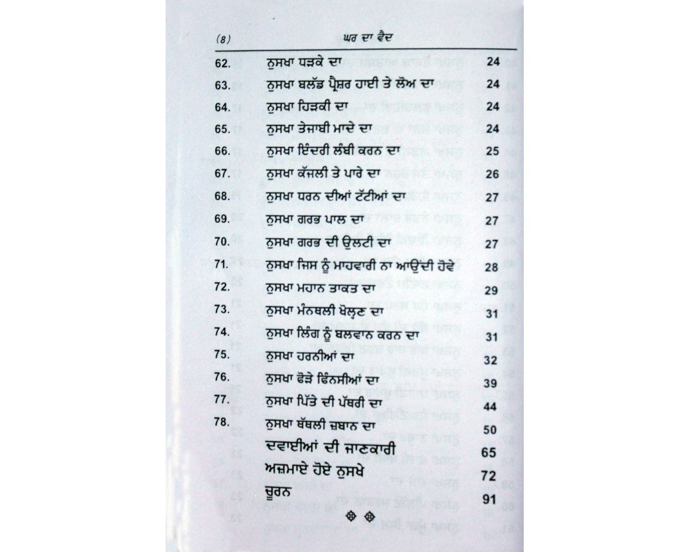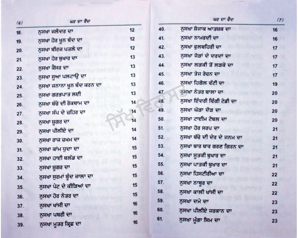 Ghar Da Vaid (Punjabi: ਘਰ ਦਾ ਵੈਦ) Ayurveda Writer – Sant Prem Singh Vaidraj Publisher – B. Chattar Singh Jiwan Singh Amritsar