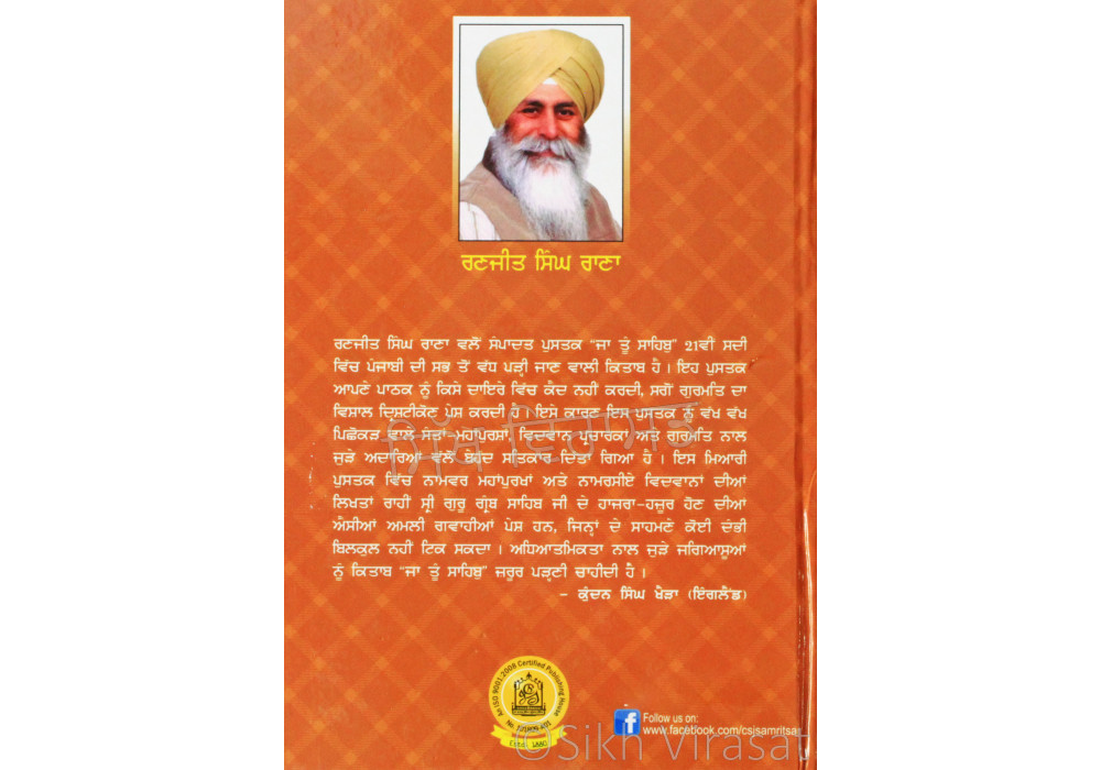Jaa Toon Sahib ਜਾ ਤੂੰ ਸਾਹਿਬੁ Book By Ranjit Singh Rana