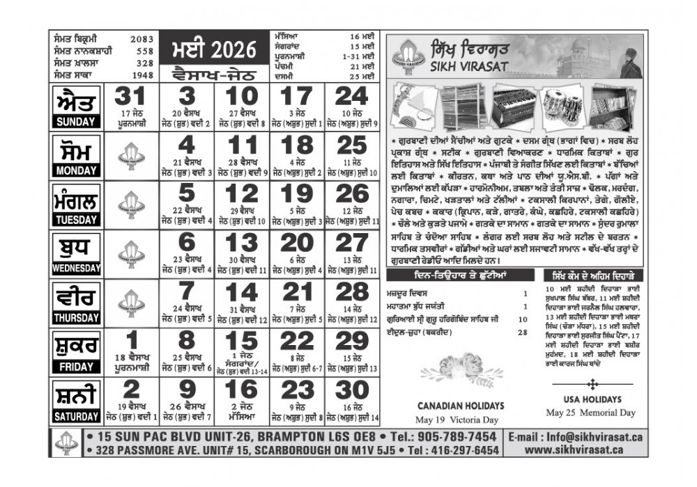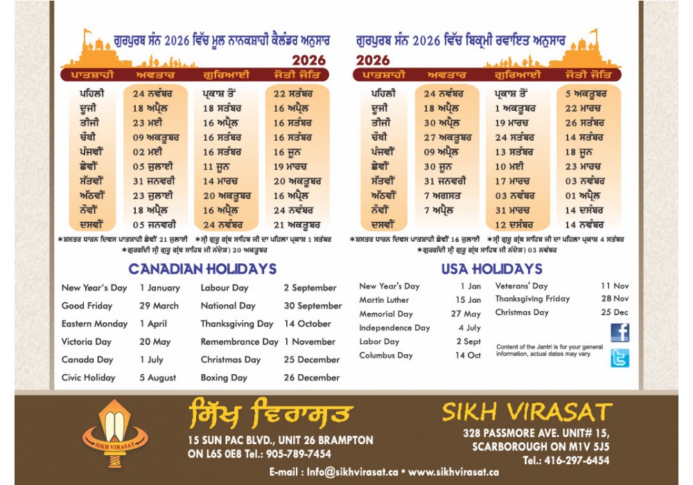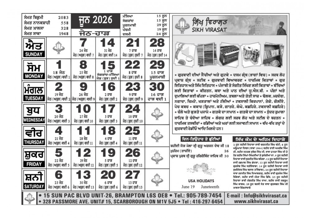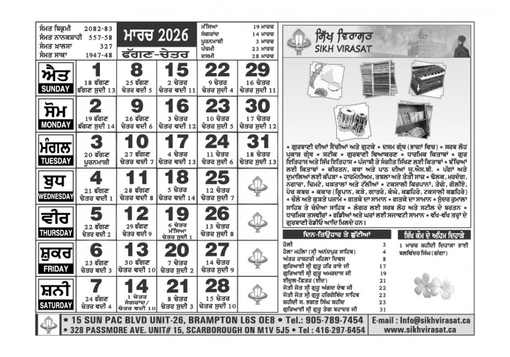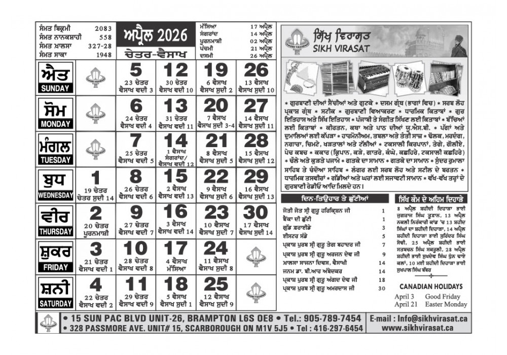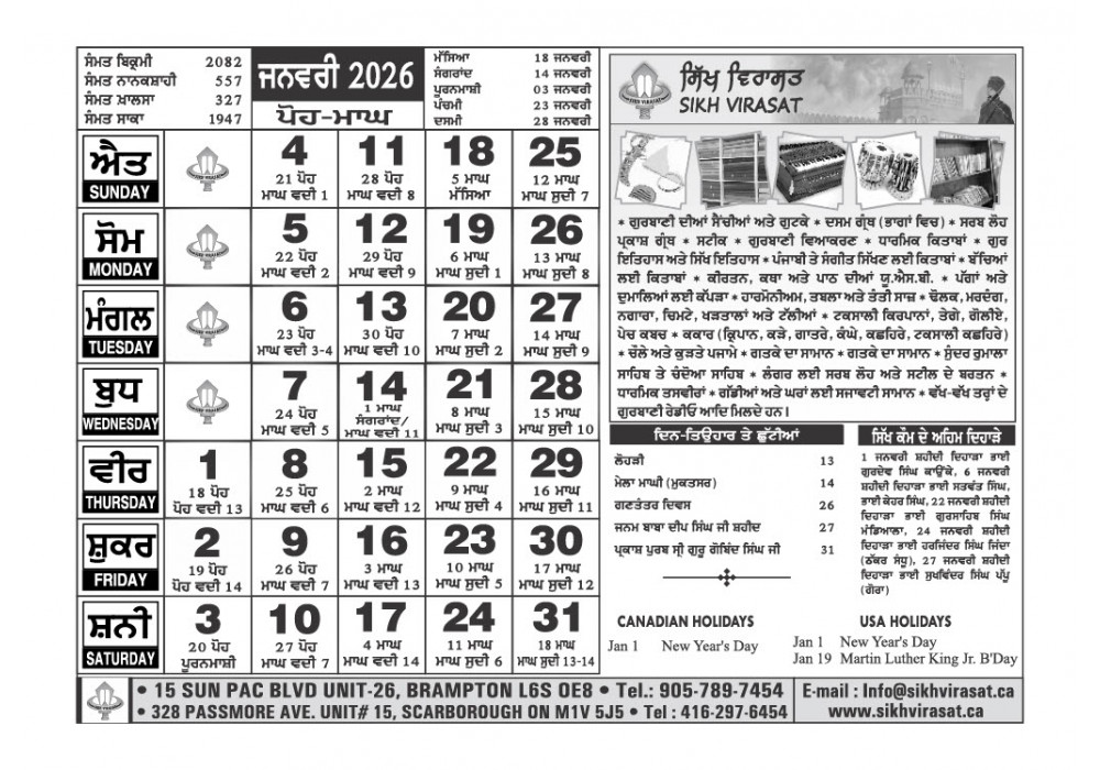 Jantri 2026/ Punjabi Jantri - Sikh Virasat