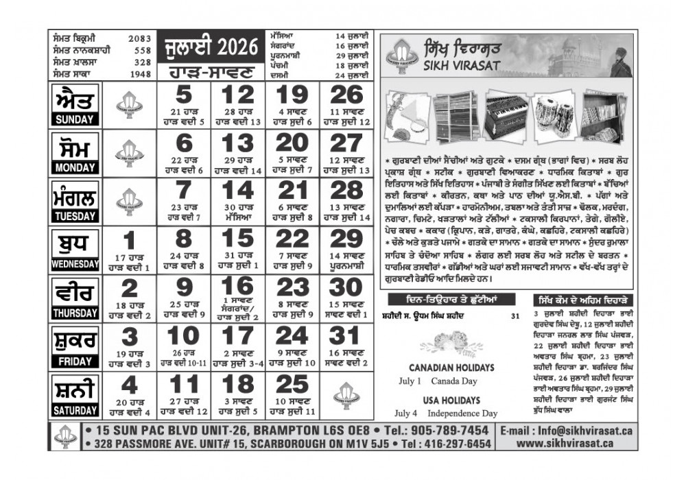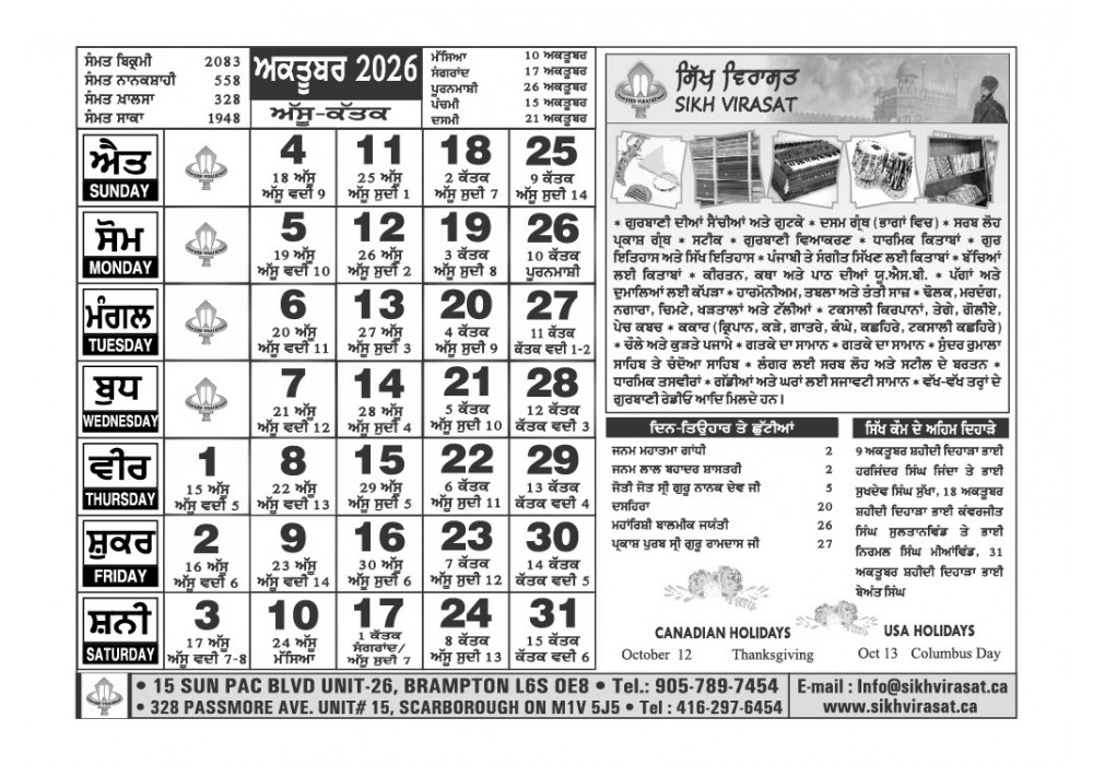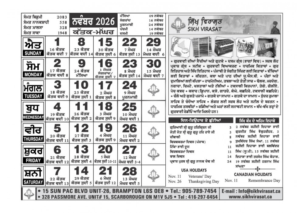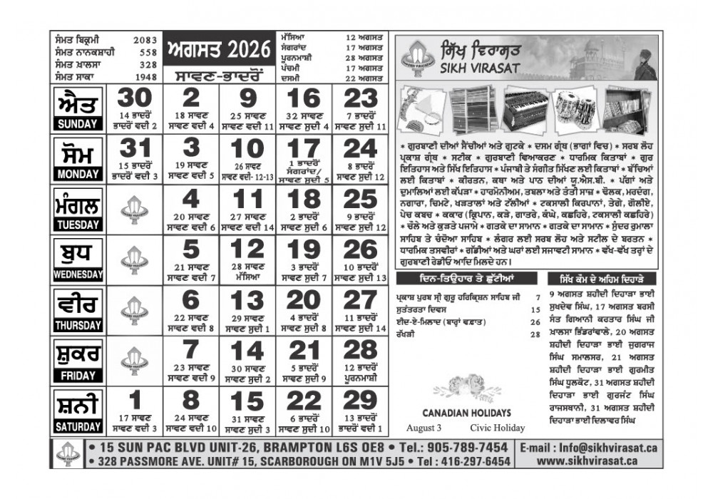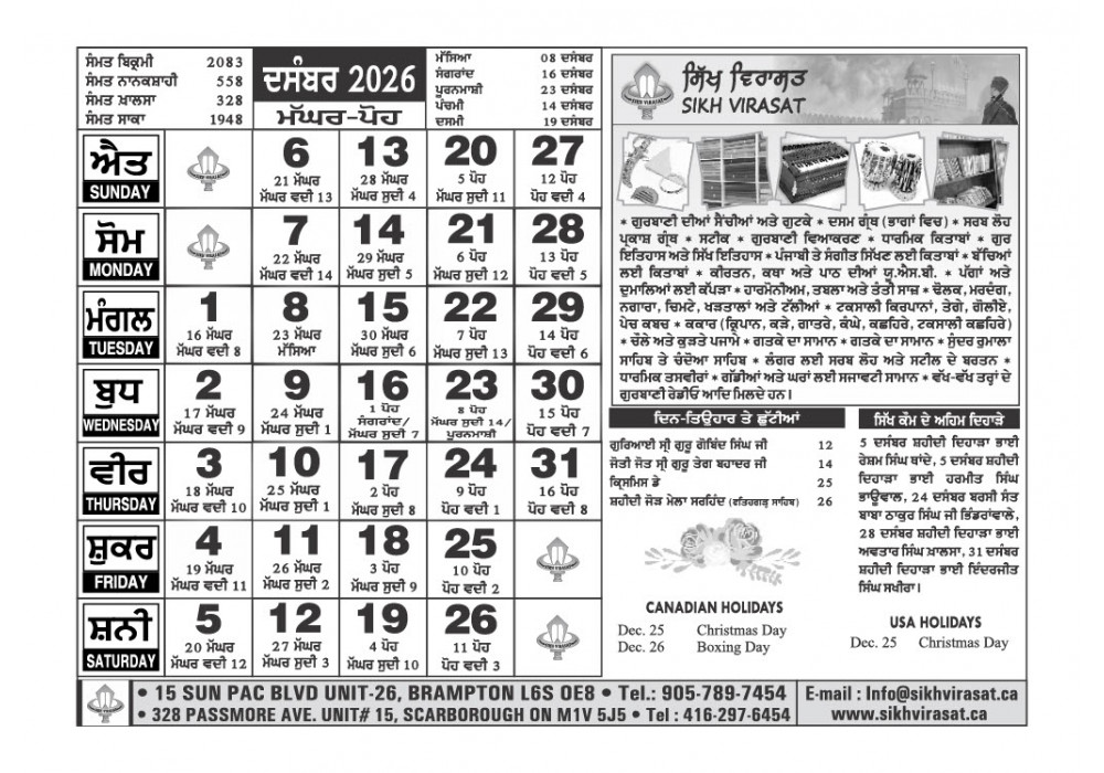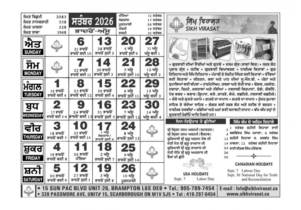 Jantri 2026/ Punjabi Jantri - Sikh Virasat