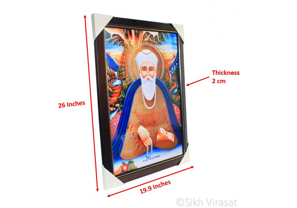 Shri Guru Nanak Dev Ji Nanaksar Colored Photo with Pehli Pauri da Path, Wooden Frame with matte finish and golden lining, Size – 17x23