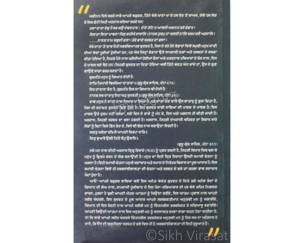 ਆਪਣੇ ਬਜ਼ੁਰਗ ਬਾਬਿਆਂ ਵਲੋਂ ਇਸ ਅਨੰਤ-ਬੇਅੰਤ ਕੁਦਰਤ ਦੇ ਦਿਤੇ ਗਏ ਅਨੇਕ ਭੇਦਾਂ ਦੇ ਗਿਆਨ ਦੀ ਲੋਅ ਨਾਲ, ਸਾਮਰਾਜੀ ਪੂੰਜੀਵਾਦ ਦੇ ਇਸ ਪੈਸਾ-ਸਭਿਆਚਾਰ ਦੀ ਹਰ ਵੇਲੇ ਜ਼ਹਿਰ ਨਿਗਲਣ ਕਾਰਨ, ਮੁਰਦਾ ਹੋ ਚੁਕੀ ਆਪਣੀ ਅੰਤਰ-ਆਤਮਾ ਨੂੰ ਜਿਉਂਦਾ ਕਰੀਏ, ਇਸ ਆਤਮਾ-ਪ੍ਰਗਾਸ ਨਾਲ ਆਪਣੇ ਸਰੀਰ ਅੰਦਰਲੇ, ਇਸ ਕੁਦਰਤ ਦੇ ਮੂਲ ਆਧਾਰ ਆਪਣੇ ਸਰਬਸ਼ਕਤੀਮਾਨ ਅਨੁਭਵੀ ਮਨ ਨੂੰ ਜਗਾਈਏ, ਗਿਆਨ ਦੀ ਇਸ ਰੋਸ਼ਨੀ ਨਾਲ ਆਪਣੇ ਸਰੀਰੀ ਮਨ ਨੂੰ ਚਿੰਤਨਸ਼ੀਲ ਤਰਕਸੰਗਤ ਤੇ ਜਗਿਆਸੂ ਬਣਾਈਏ। ਆਪਣੀ ਜਿਉਂਦੀ ਆਤਮਾ ਨਾਲ ਇਸ ਅਨੁਭਵੀ ਮਨ ਨੂੰ ਸਦਜਾਗਤ ਰਖਣਾ ਸਾਡਾ ਯਤਨ ਹੋਣਾ ਚਾਹੀਦਾ ਹੈ, ਤਾਂ ਕਿ ਸਾਡੇ ਆਪਣੇ ਸਰੀਰ ਅੰਦਰਲੇ ਚਿੰਤਨਸ਼ੀਲ ਤਰਕਸੰਗਤ ਅਨੁਭਵੀ ਮਨ ਨੂੰ ਇਸ ਸਚ ਦਾ ਅਹਿਸਾਸ ਹੋ ਜਾਏ, ਕਿ ਉਸ ਦੀ ਚੜ੍ਹਦੀਕਲਾ ਸਰਬਤ ਦੇ ਭਲੇ ਵਿਚ ਹੀ ਹੈ।