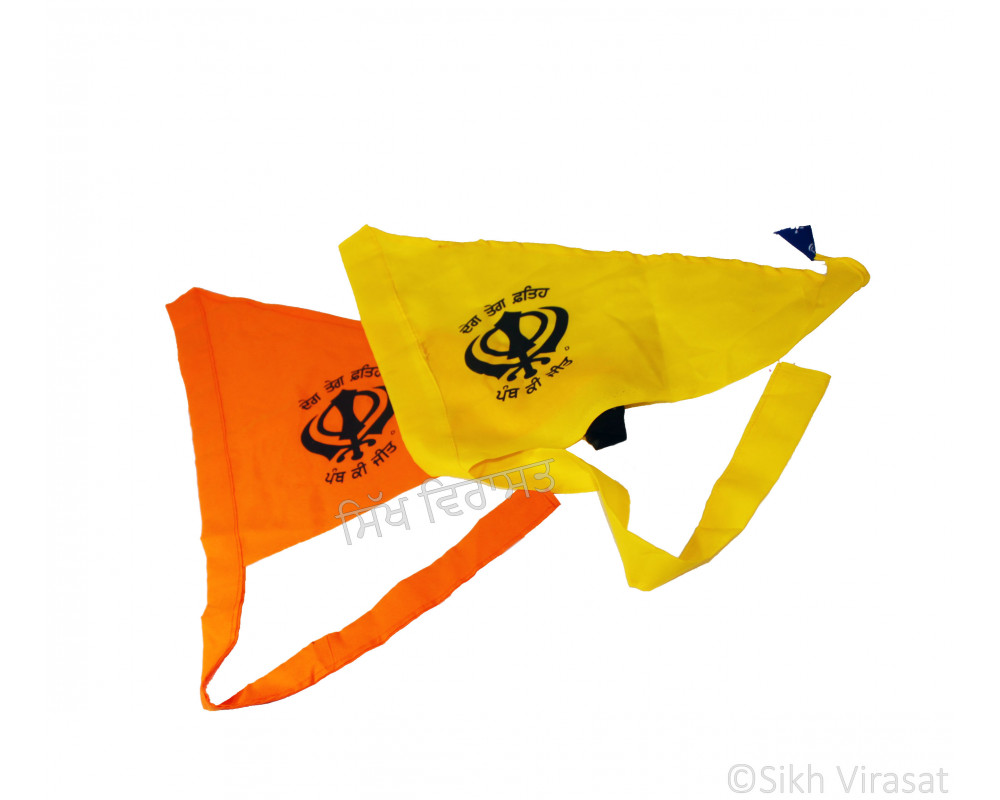 Nishan Sahib Or Printed Flag (Punjabi: Jhanda) Color Orange (Kesri) & Yellow Size 15 x 15 inch