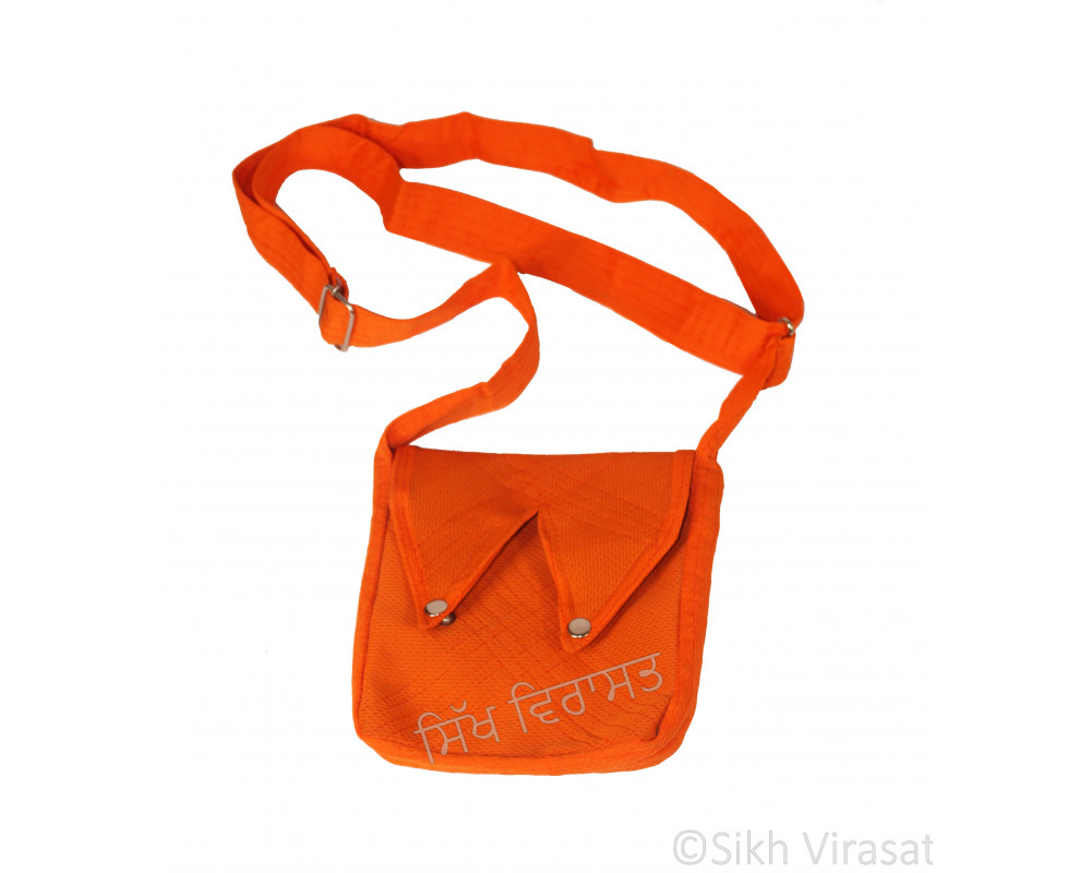 Khajana Or Gutka Sahib Bag with Adjustable Strap and 2 Tich Buttons Color- Orange